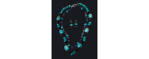 This stunning Native American necklace set is a beautiful combination of hairpipe Bone, Genuine Turquoise, Onyx, and Hematite beads, exuding a sense of tradition and craftsmanship. The necklace, 22" in...
